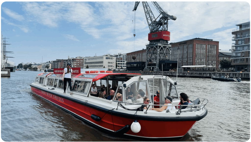 Risteilyllä M/s Aurellalla koet rentouttavan ja inspiroivan elämyksen Aurajoella Turun sydämessä. Opastetun jokiristeilyn aikana audio-oppaamme kertoo kaupungin historiasta, nähtävyyksistä ja elämästä jokirannassa – historiallisista rakennuksista moderneihin maamerkkeihin. Aluksella on viihtyisä baari, josta voit ostaa sekä kylmiä että lämpimiä juomia, täydellisiä nautittavaksi maisemista samalla kun ihailet näkymiä salongista.